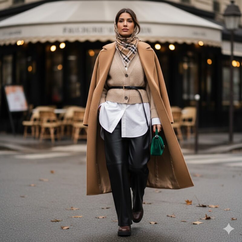الطبقات هي مفتاح الأناقة الخريفية. لا تقتصر الطبقات على التدفئة فحسب، بل تمنح إطلالتك عمقًا واحترافية. اعتمدي على: